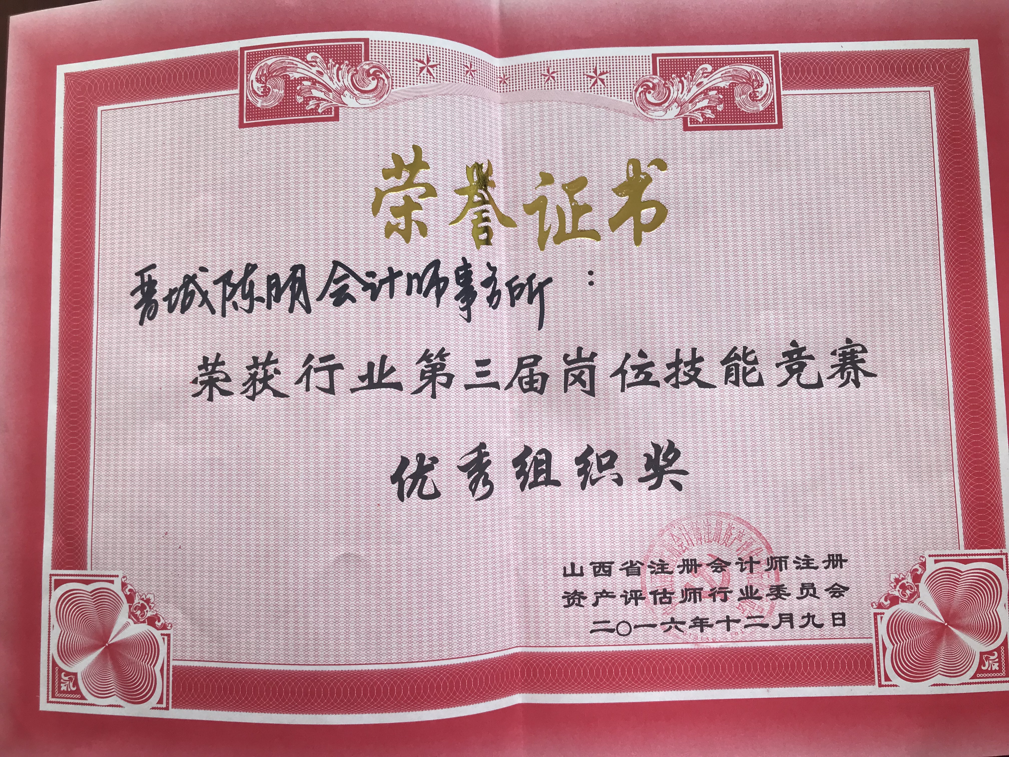 晉城陳明會(huì)計(jì)師事務(wù)所榮譽(yù)